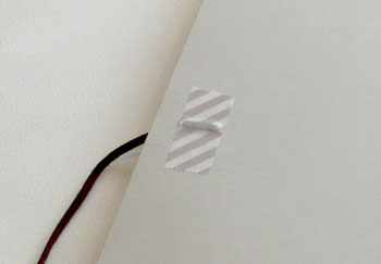 4-2.紐を保護します☆ 貼りつけた部分の保護にテープ(紙でもOK)を貼りつけます。 |