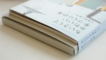 6.箱を本に貼り付ける。 箱を本の底辺と背を基準に、 |
